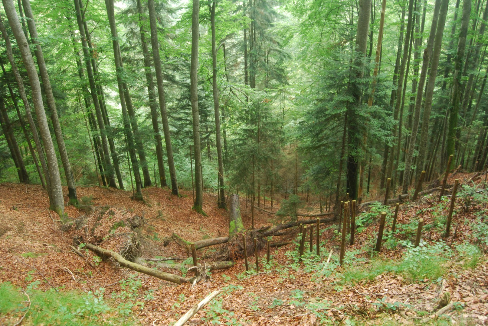 Im Hang Richtung E 3 (Exp. NO) sind 5 Bu (Total 2 m3) geworfen worden
