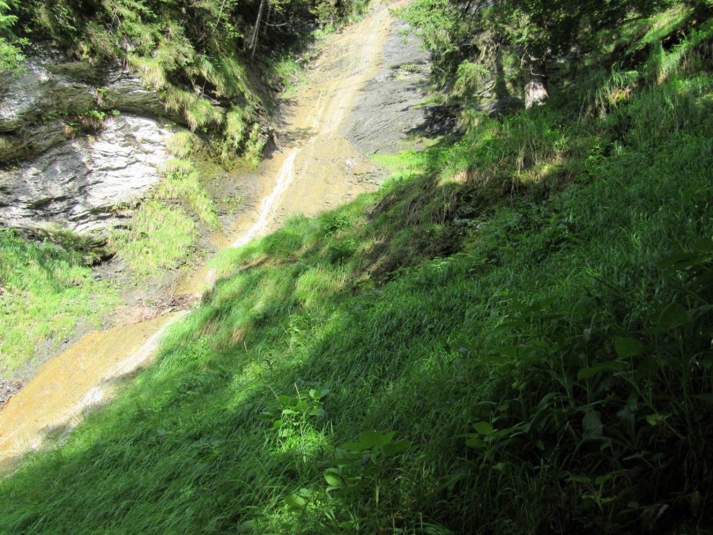 Stein- und Eisschlag entlang den Bächen -> Fichte Rotfäule