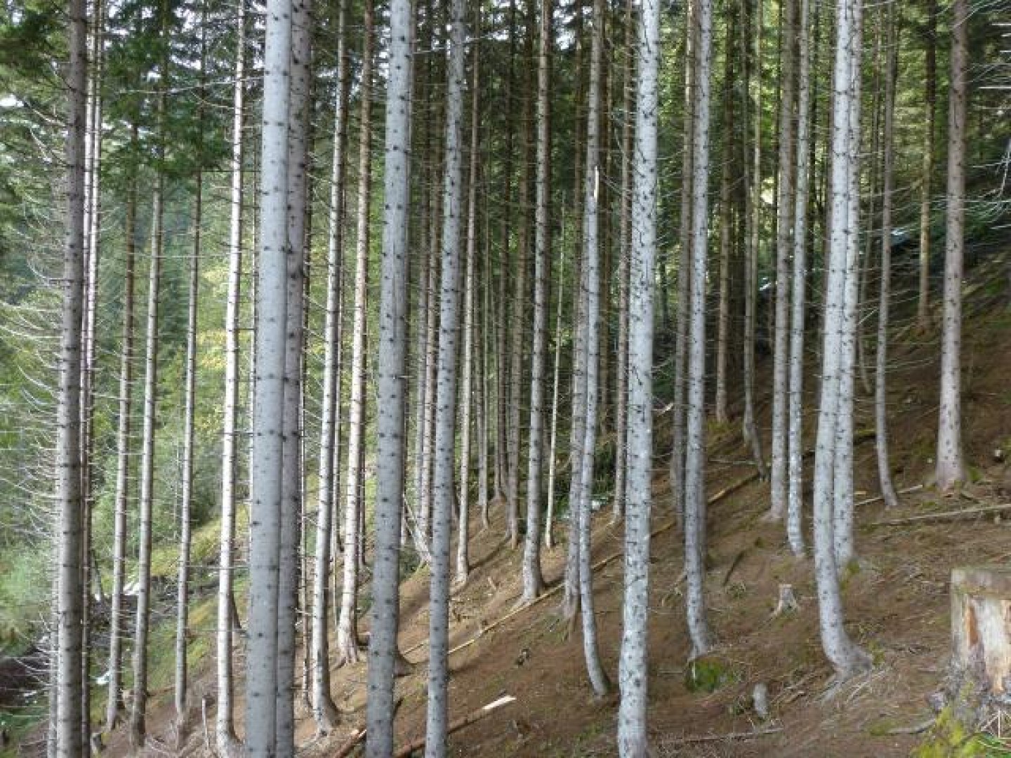 Durch hohe Wilddichte findet eine Entmischung in der vorhanden Verjüngung statt. Laubbaumarten können mit dieser Wilddichte nicht aufkommen