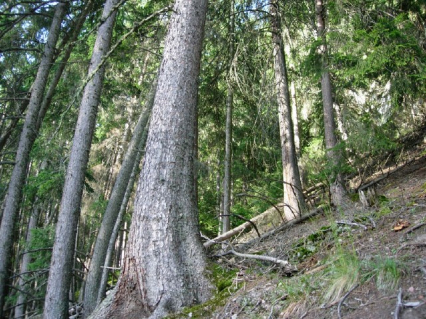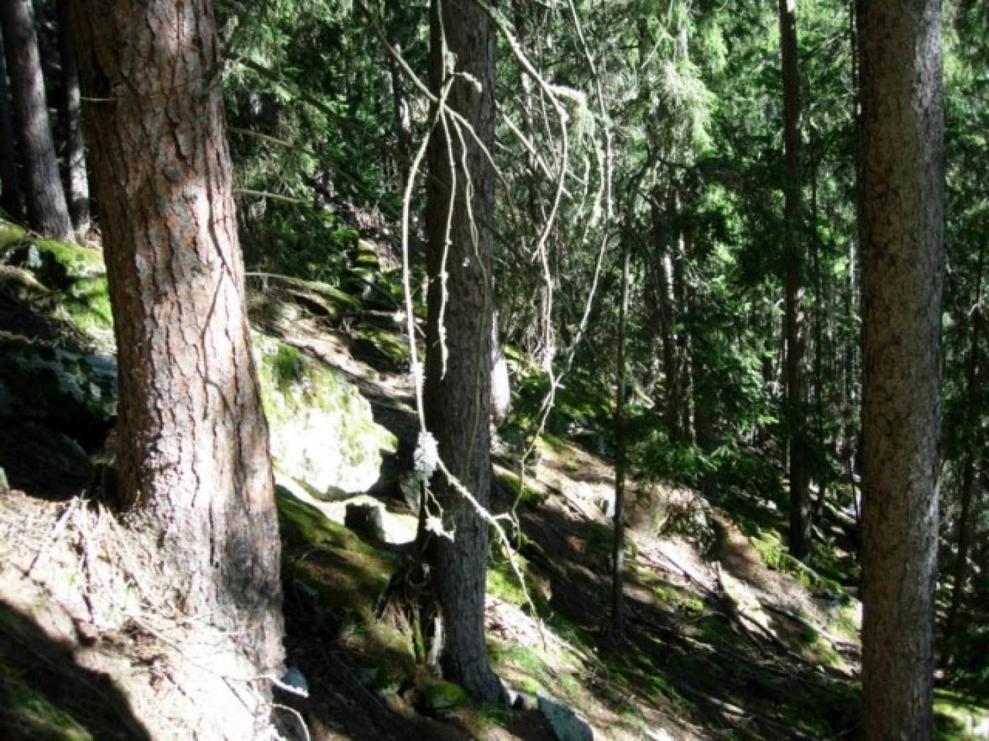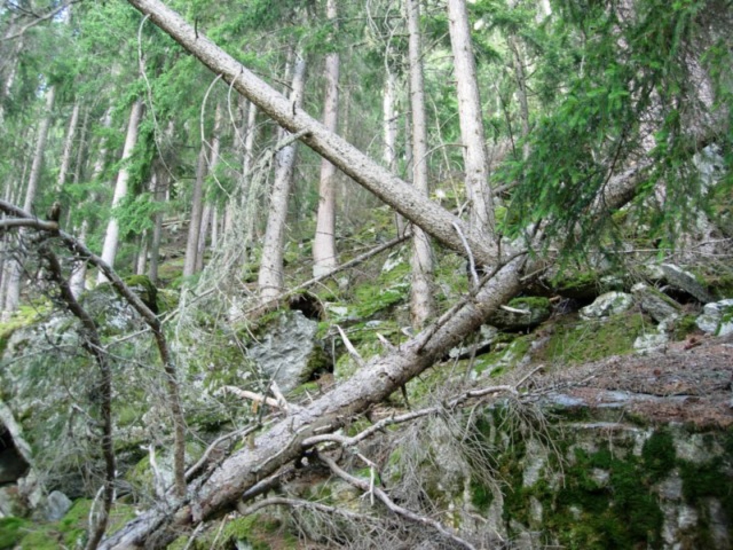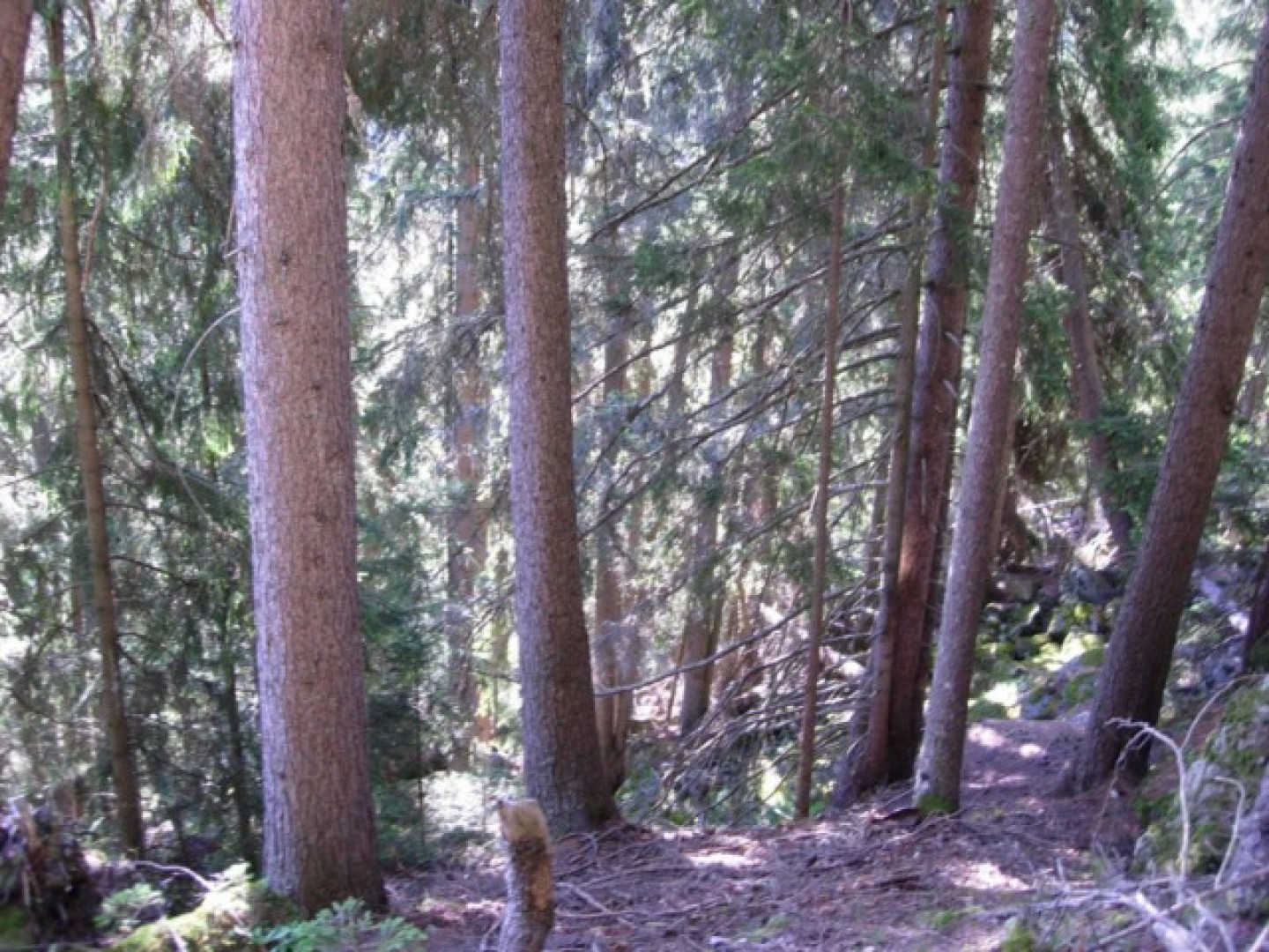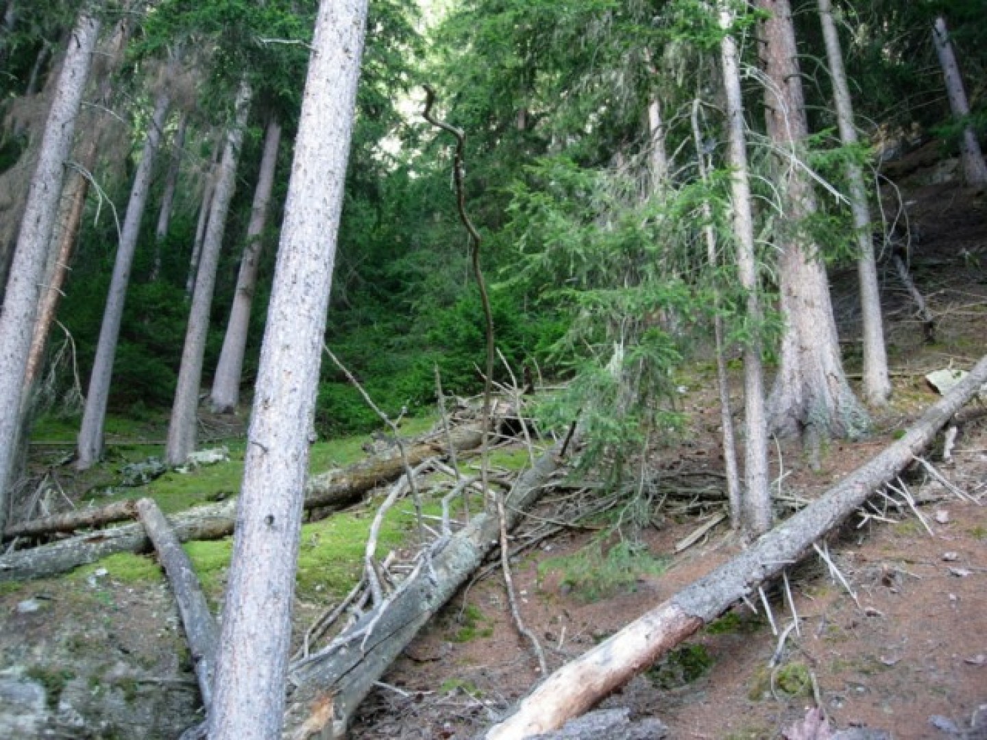effor2: Hochmontaner Fichtenwald im Mattertal. Wälder auf Blockschutthalden sind im Mattretal auf dieser Höhenlage häufig.-->Sonderwaldstandort Zypressenschlafmoos-Fichtenwald
