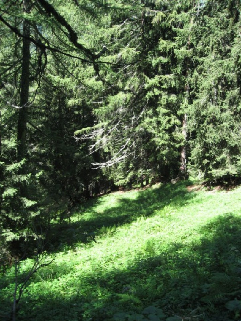 Verjüngung eines lärchenreichen hochmontanen Fi-Waldes im Lawinenanrissgebiet.
