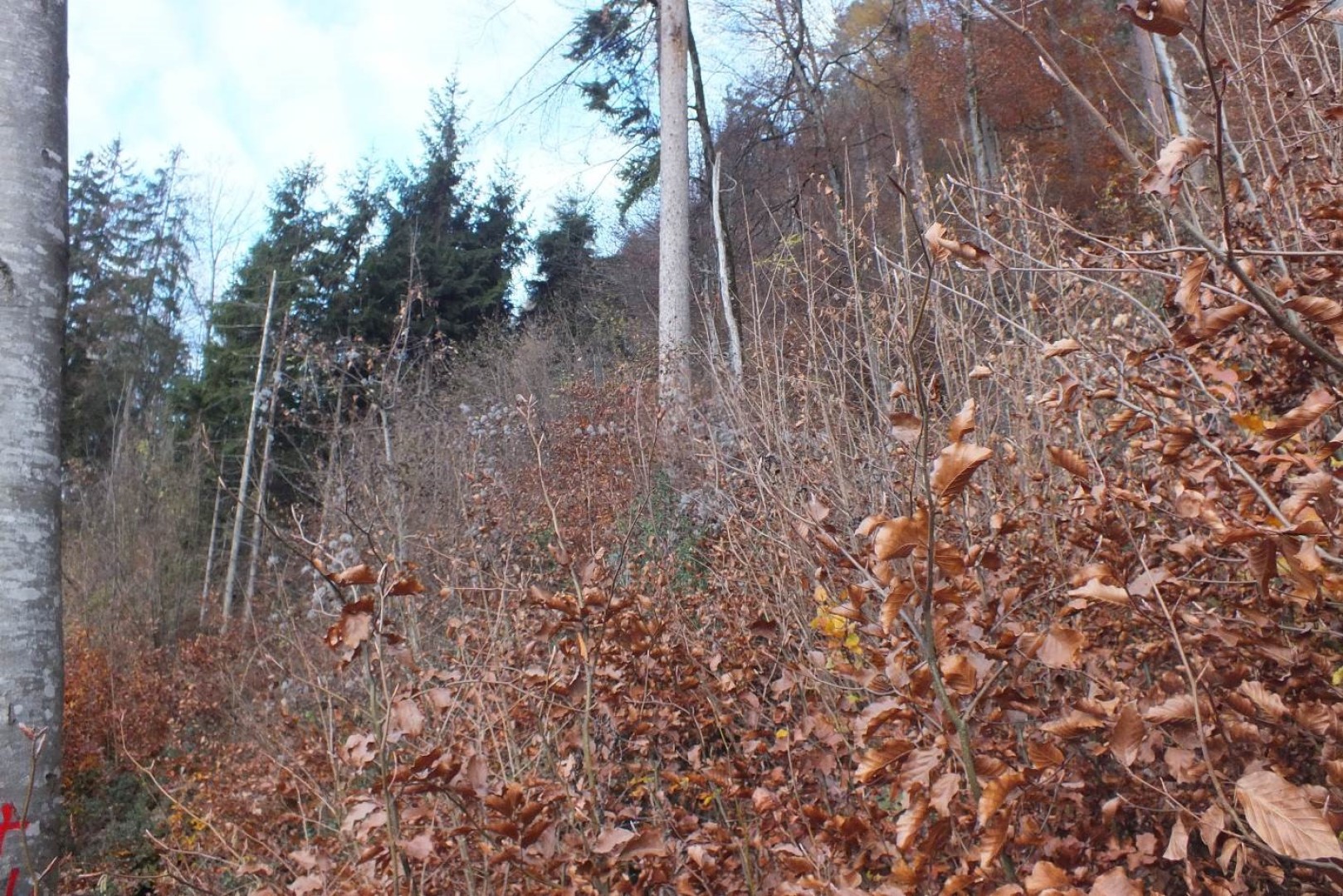 • Aufwachsen eines artenreichen Jungwaldes. Einzelne Stellen von Brombeeren bedeckt und Waldreben auf Teilflächen ein grosses Problem. Schutzwirkung aufgrund geringer Stammzahl vorübergehend reduziert, was mit Querbäumen möglichst kompensiert wurde.