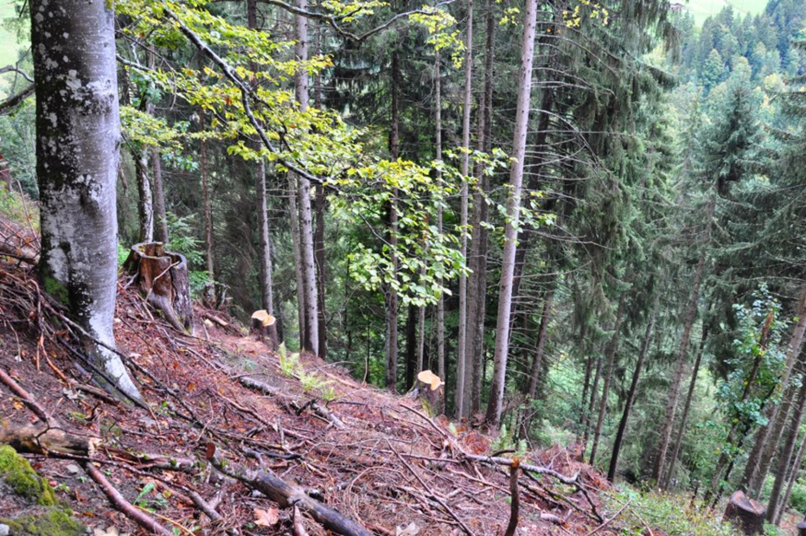 Il s'agissait essentiellement de parcelles privées. Avec l'augmentation de la circulation sur la route cantonale à l'aval et la chute des prix des bois, ces forêts n'avaient pratiquement plus été exploitées depuis des décennies. Des chablis de gros résineux (essentiellement épicéas) ont déstabilisés des blocs se trouvant sur les affleurements rocheux. Ces blocs et des arbres ont traversés la route. Dès 2004, des travaux sylvicoles sont devenus nécessaires (enlever les arbres les plus dangereux et introduire le rajeunissement) et des travaux de stabilisation de rocher et la construction d'ouvrages de protection contre les chutes de pierre ont été planifiés.