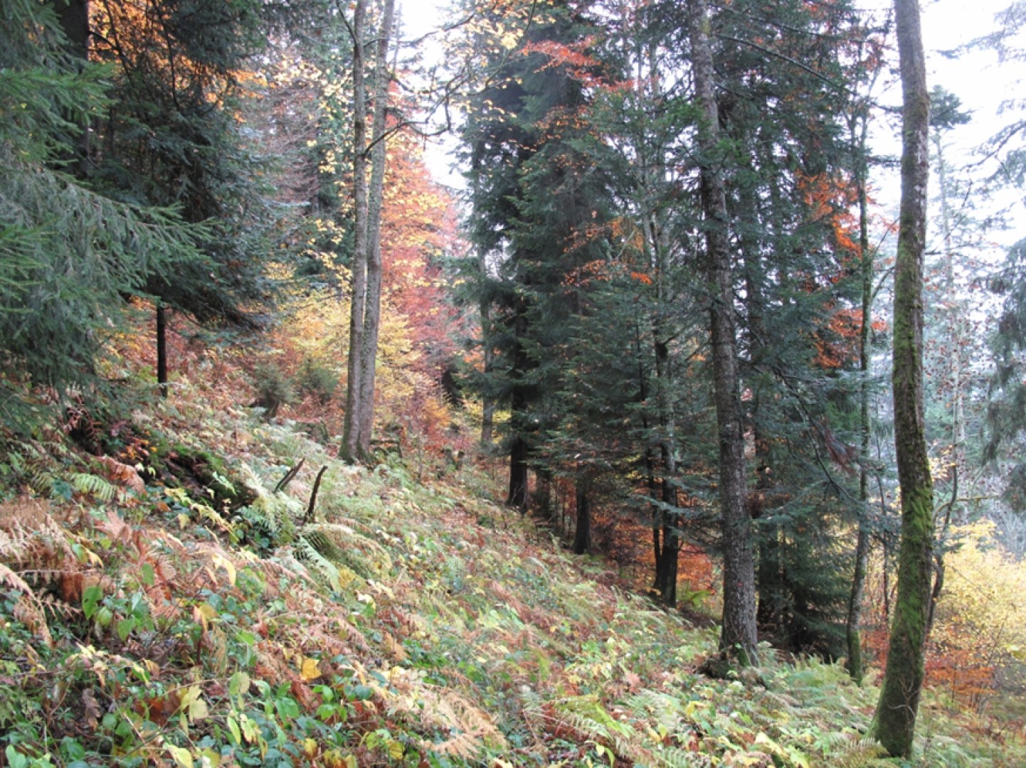 Le recrû est bien présent et le mélange conforme, mais il manque le sapin dans le rajeunissement établi à cause de la pression du gibier.