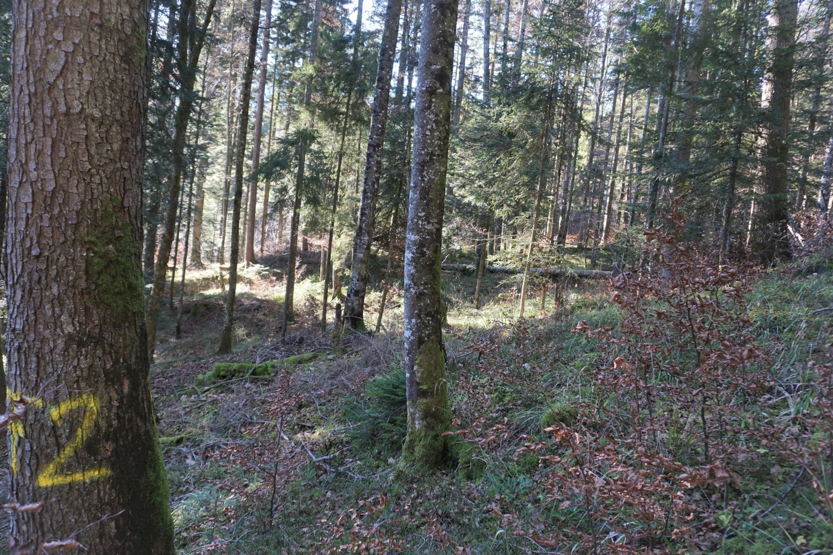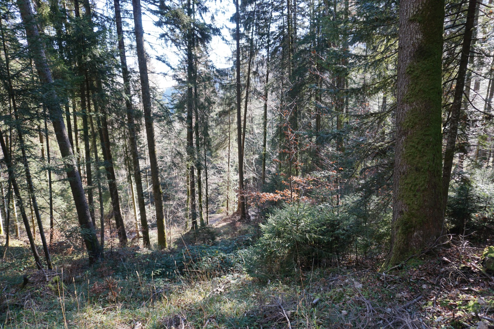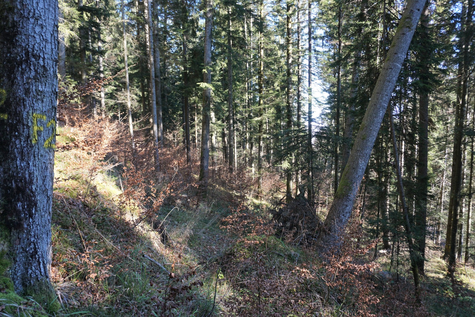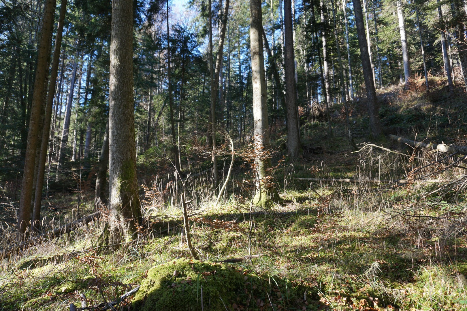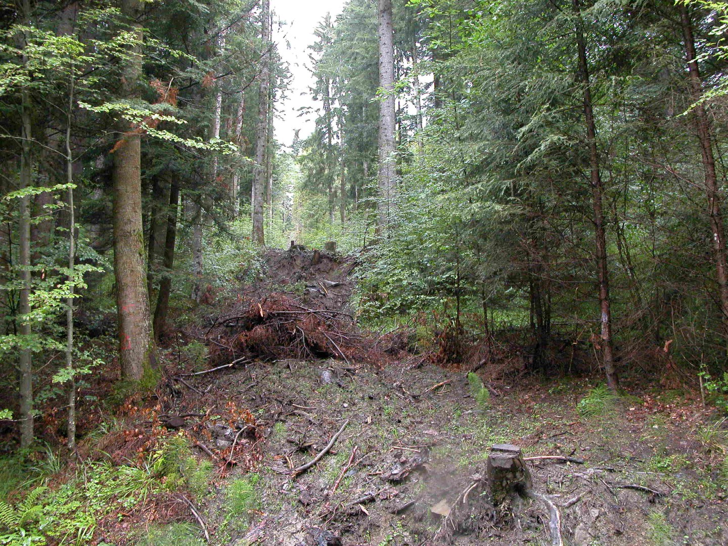 Spuren des Meierisli-Rutsch sind noch grösser geworden, der markante Riss durch die Fläche, ist gut zu sehen. Das durch den Rutsch angefallene Schadholz befindet sich z.T. noch im Bestand. Die Rutschfläche ist aber insgesamt wieder ruhiger.