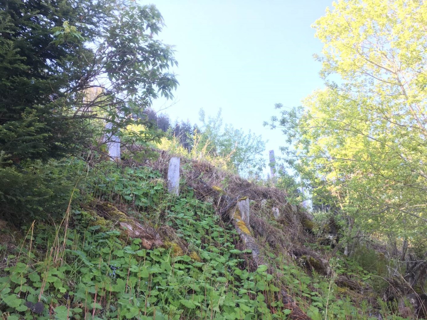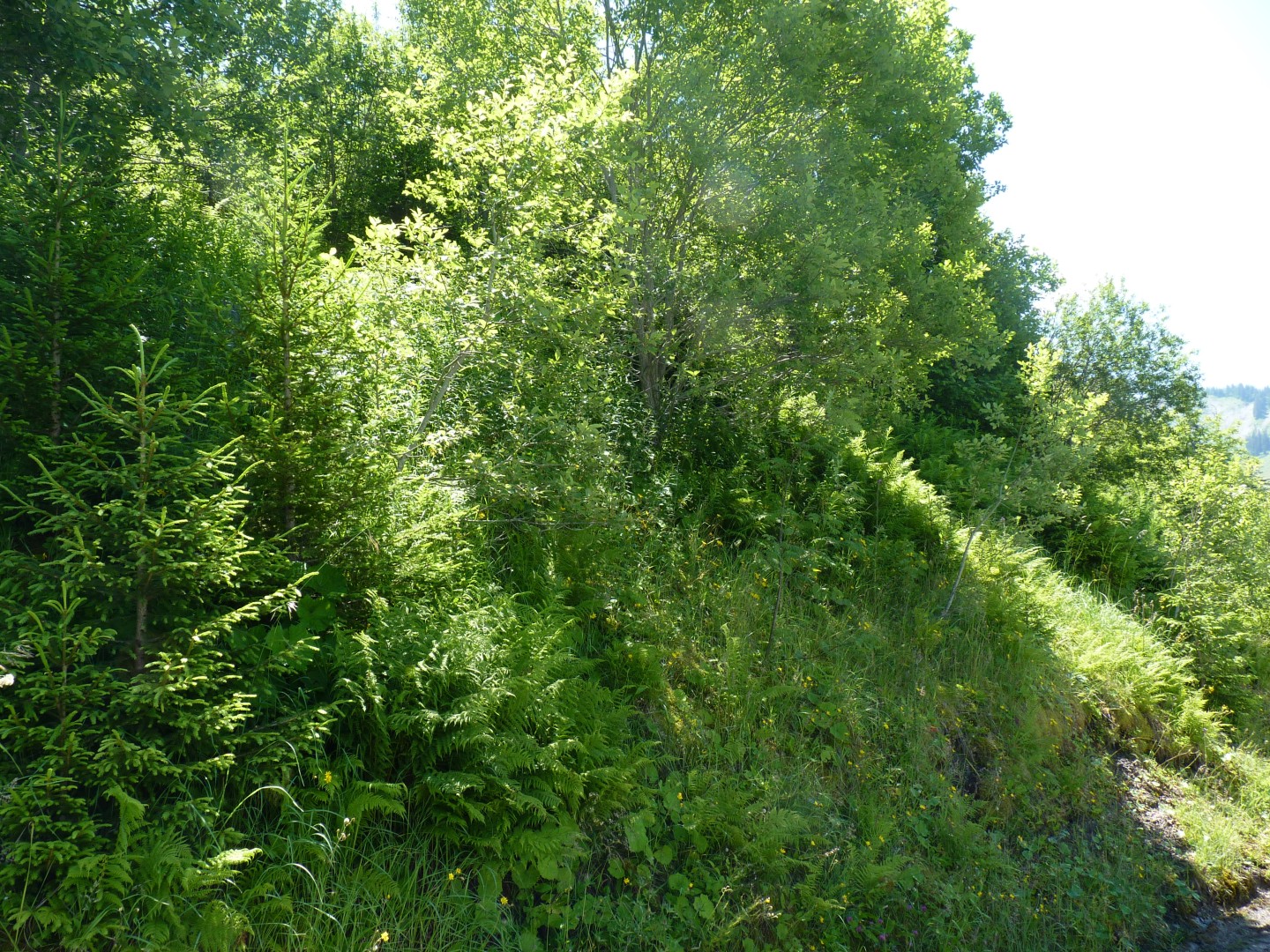 Oben: Die Bäume entwickeln sich auf der ganzen Fläche (Fichte; Pionierbaumarten: Vogelbeere und Weide; einzelne Bergahorn, Buche, Lärche). Einzelne Lücken, stellenweise gute Entwicklung der Pflanzungen (Tanne und Fichte)