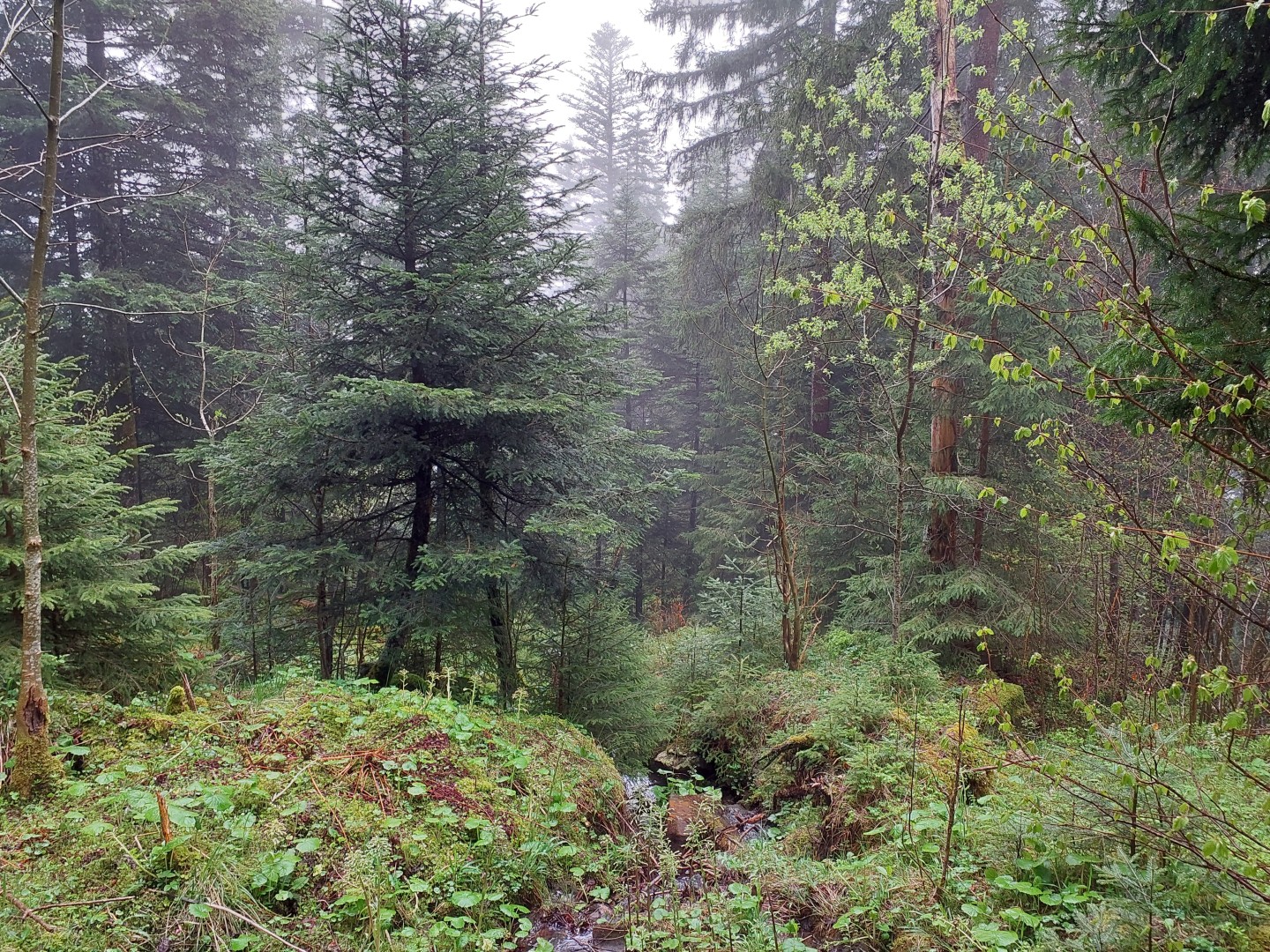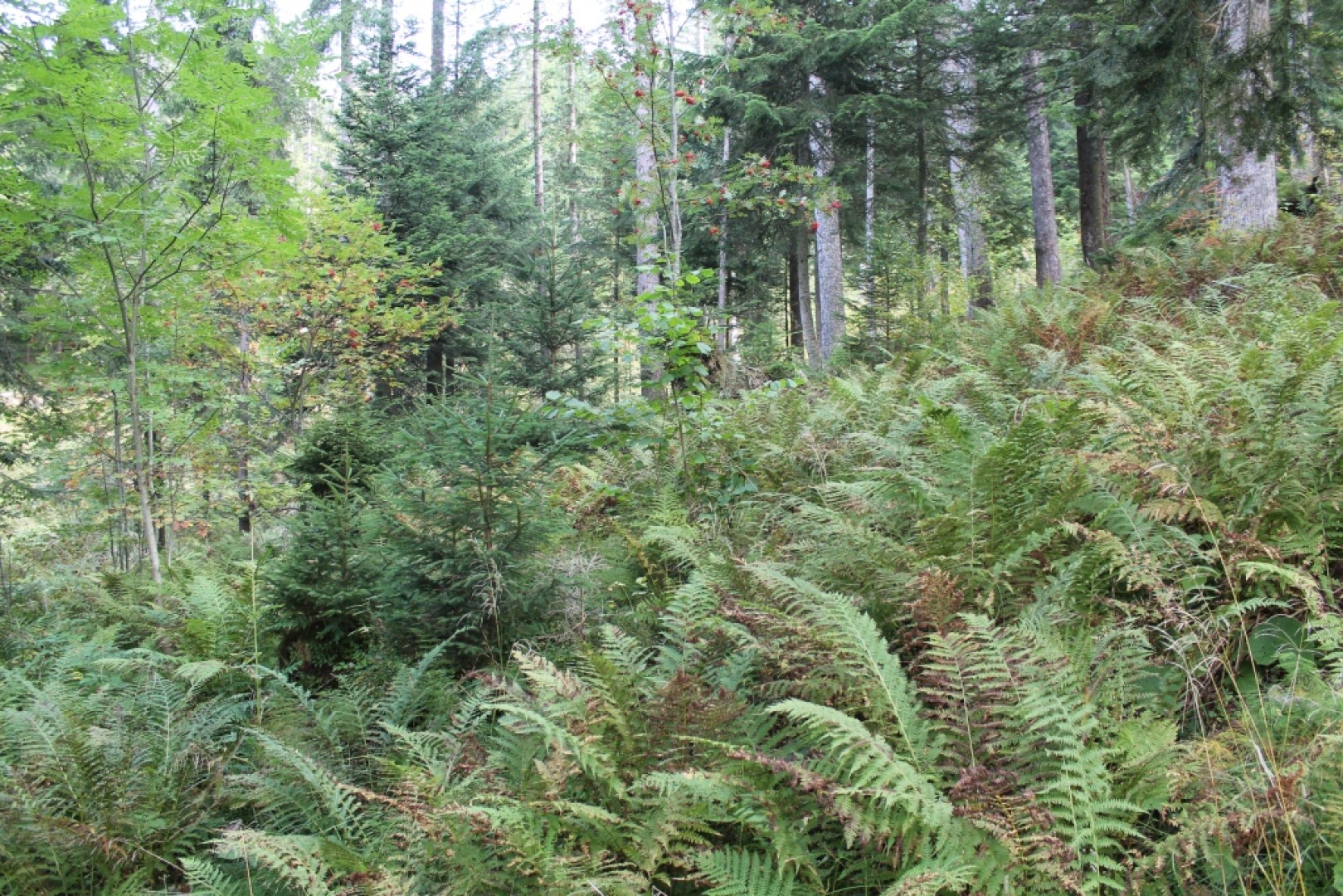 Verjüngung bei genügend Licht sehr gut, sowohl Laubholz als auch freigestellte Tannen. Im nördlichen Teil wohl noch zu wenig Licht.