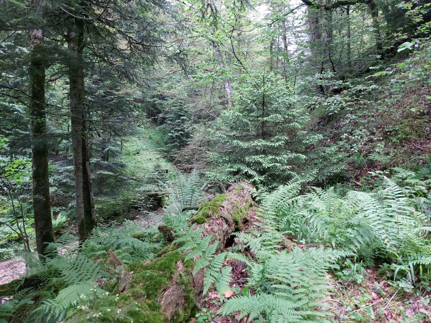 Waldreservat 50 Jahre verzicht auf Nutzung, vom Sturm Lothar Schäden nicht aufgerüstet.