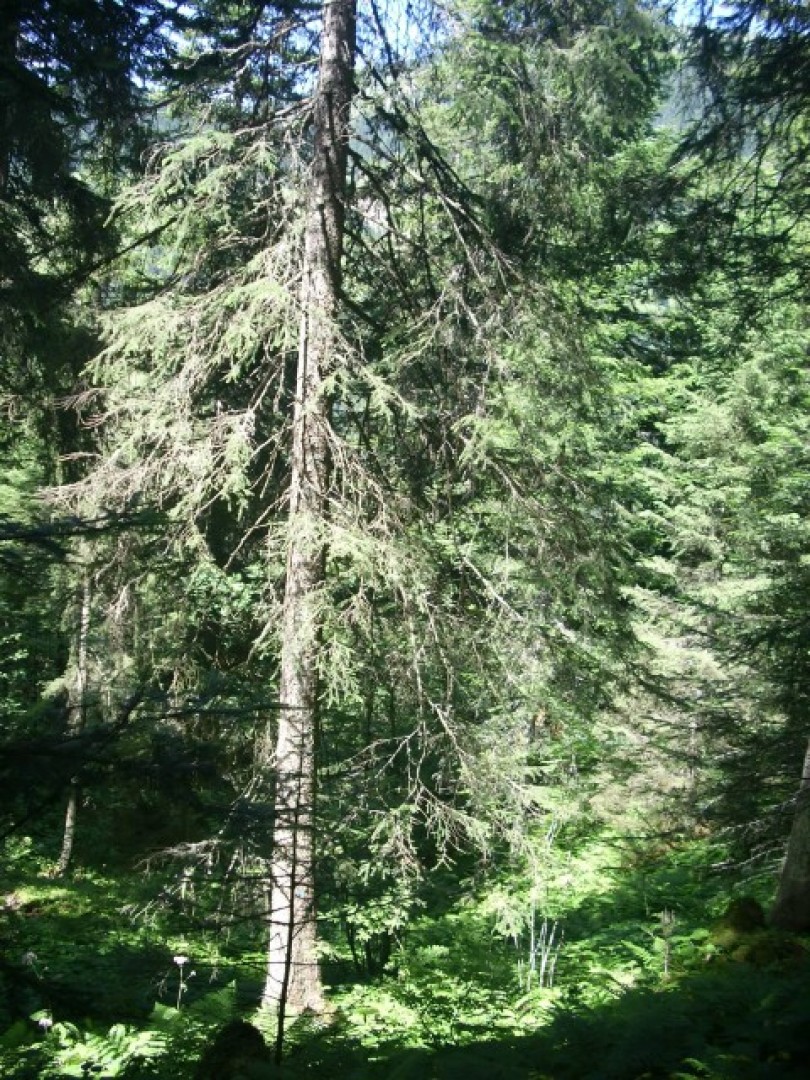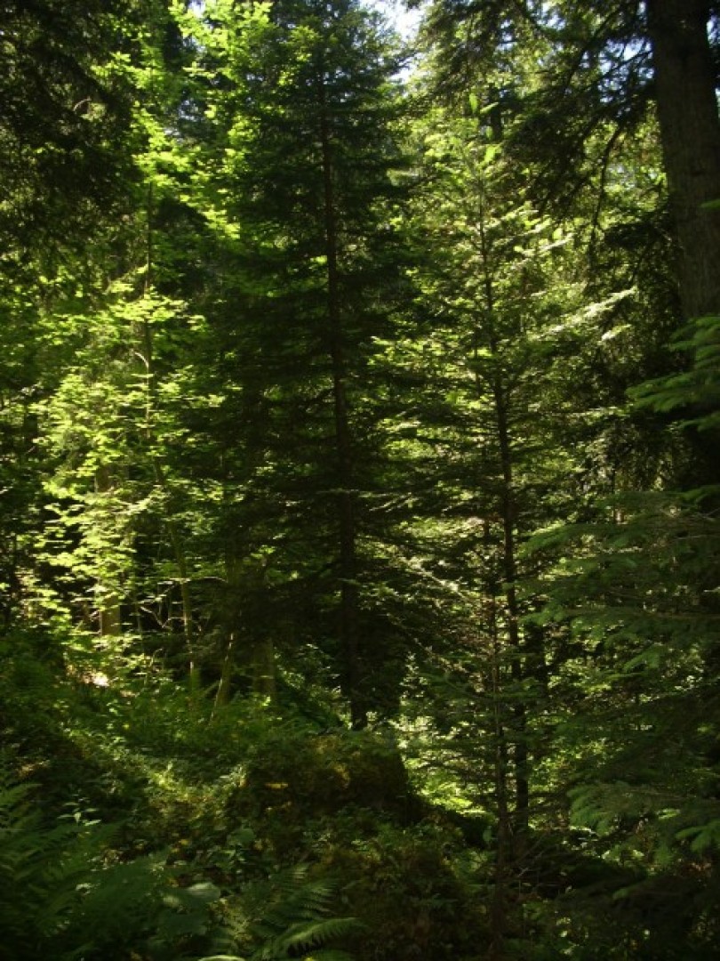 Pessière- sapinière de l'étage haut-montagnard sur hautes herbes. Présence marquée de mégaphorbiae, terrain très humide, exposition nord. Forte pression du gibier.