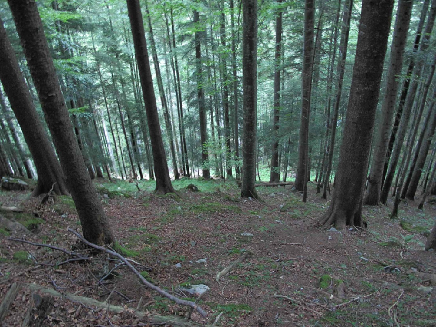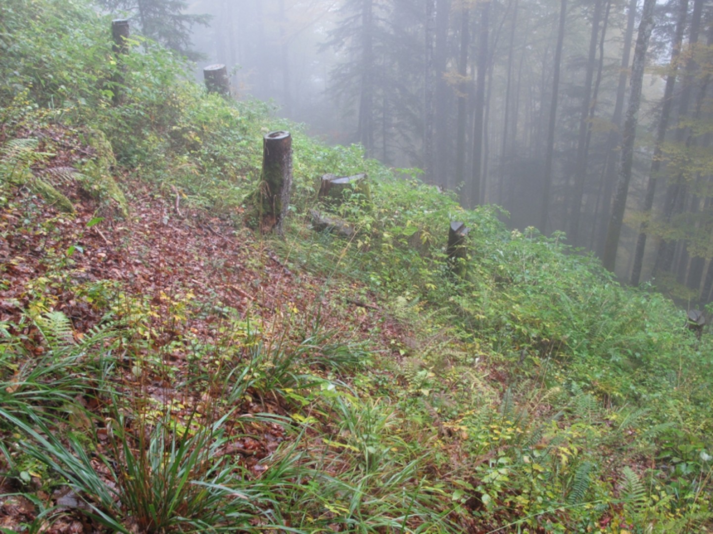 Pour garantir la stabilité du peuplement et assurer le développement des petites classes de diamètre, il faudra réaliser une intervention en créant une nouvelle trouée, voire réaliser une faible éclaircie pour favoriser les arbres stabilisateurs.