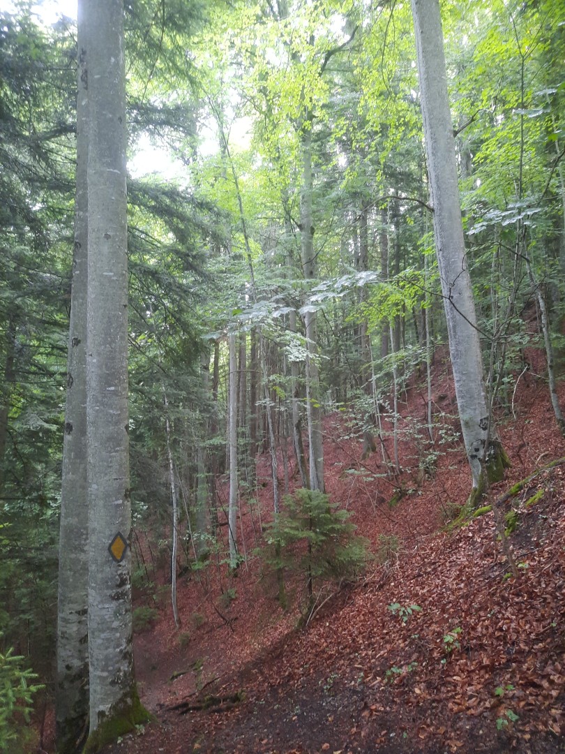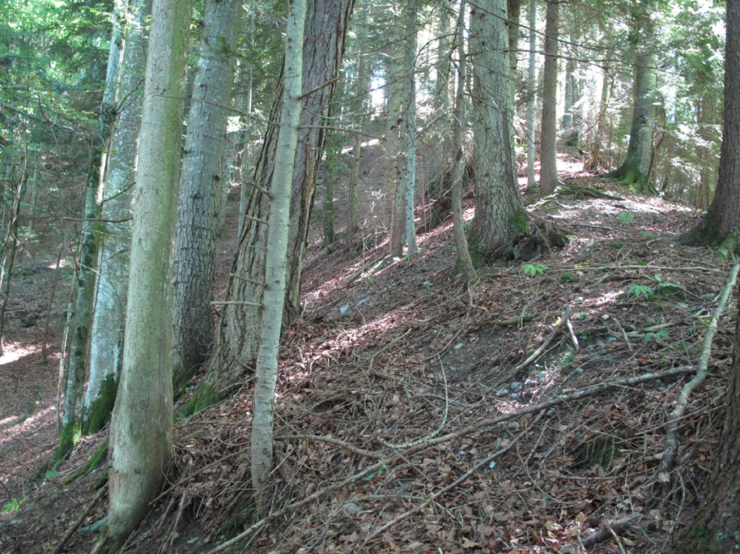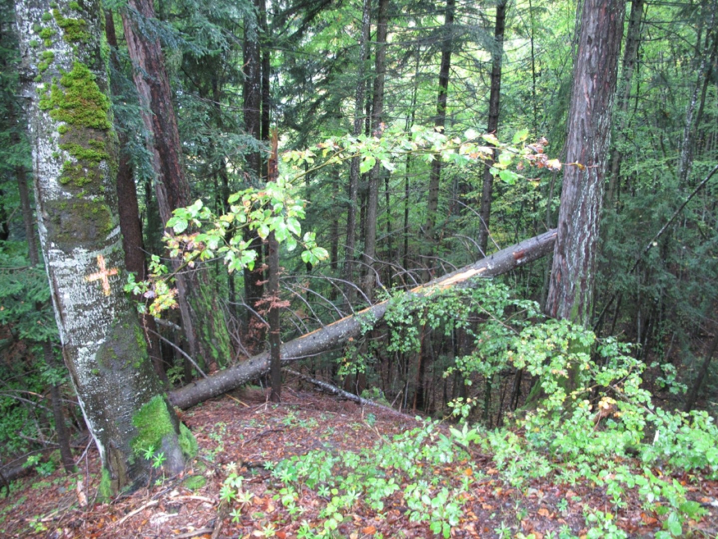 Les résineux sont bien répartis sur la surface, tandis que le hêtre, l'érable sycomore et plane constitue un mélange de feuillus bien adapté pour l'avenir. De plus, malgré la présence de gros diamètres, on observe une bonne stabilité dans le peuplement, car ceux-ci sont bien droits.