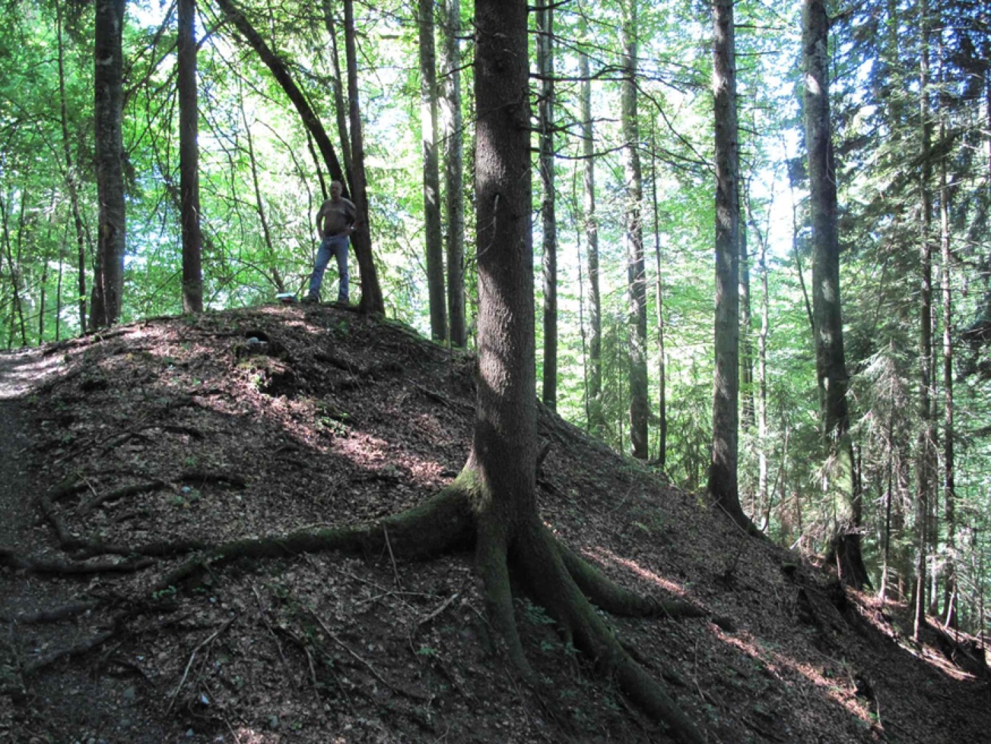 Quelques épicéas et sapin dans le raj. établi, mais sans avenir. Influence du gibier visible (sapin écorcé).