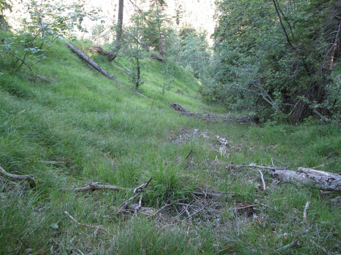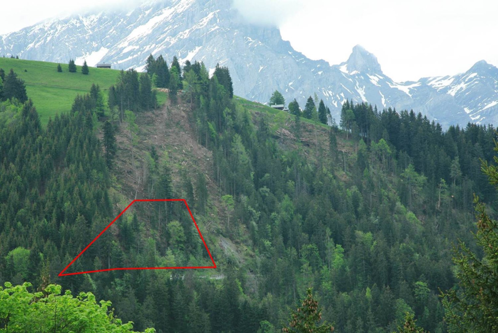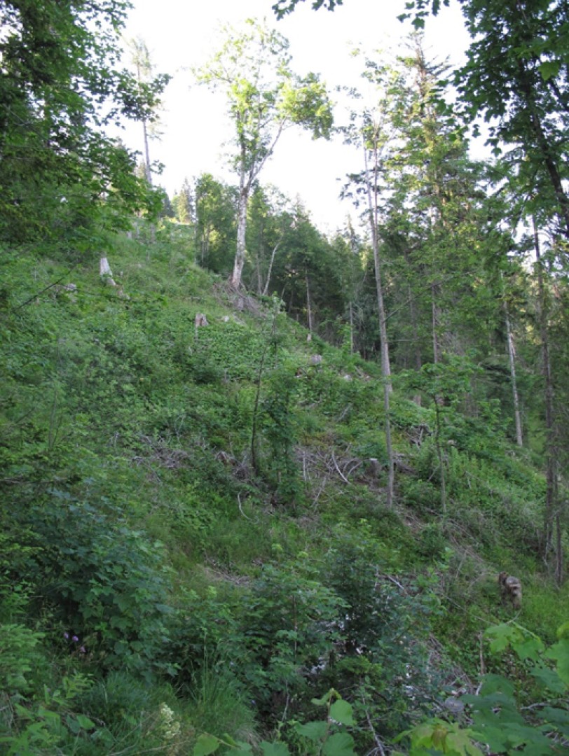 Zone de glissement de terrain déjà mise en lumière (intervention au câble-grue en 2008).