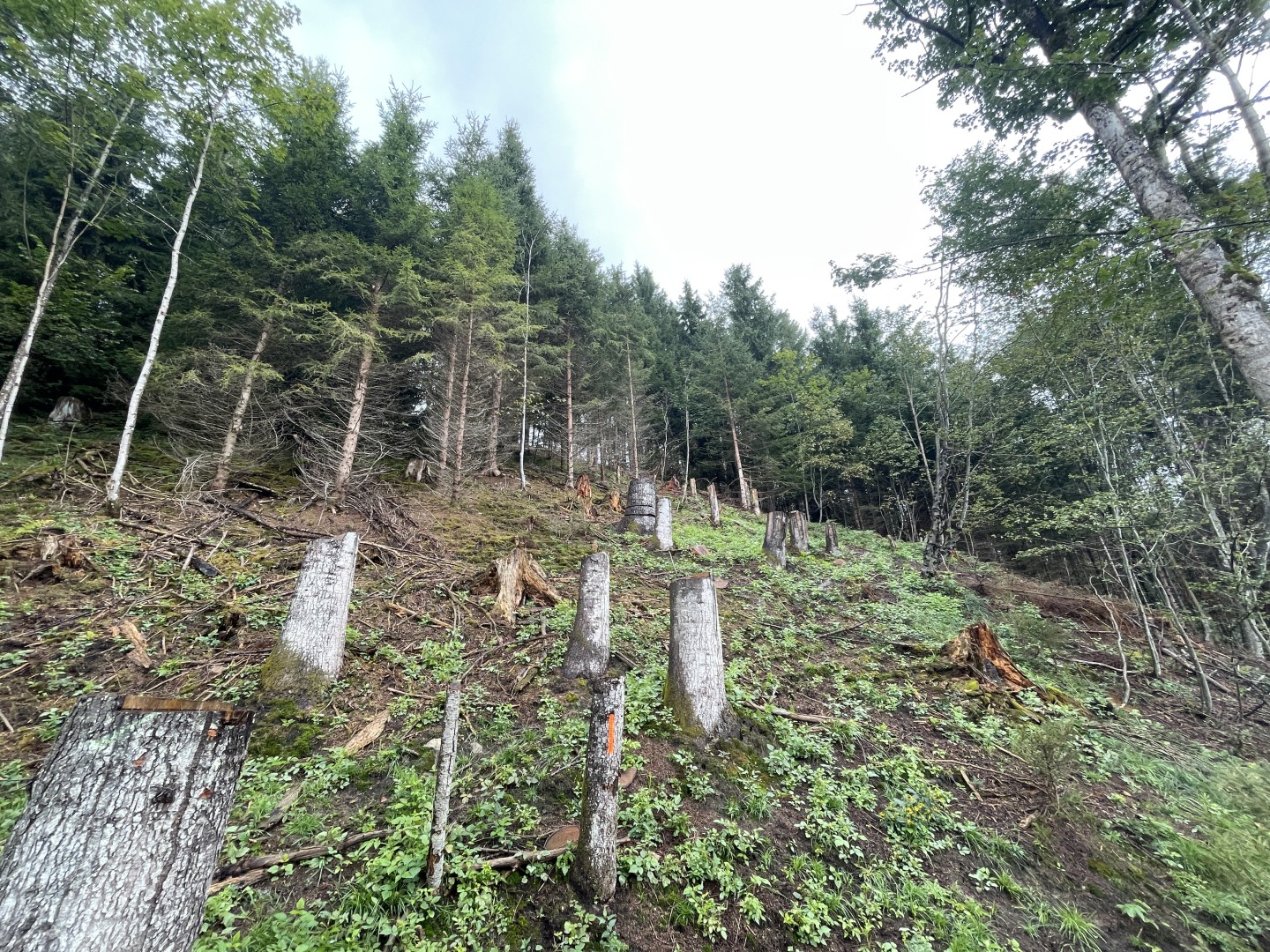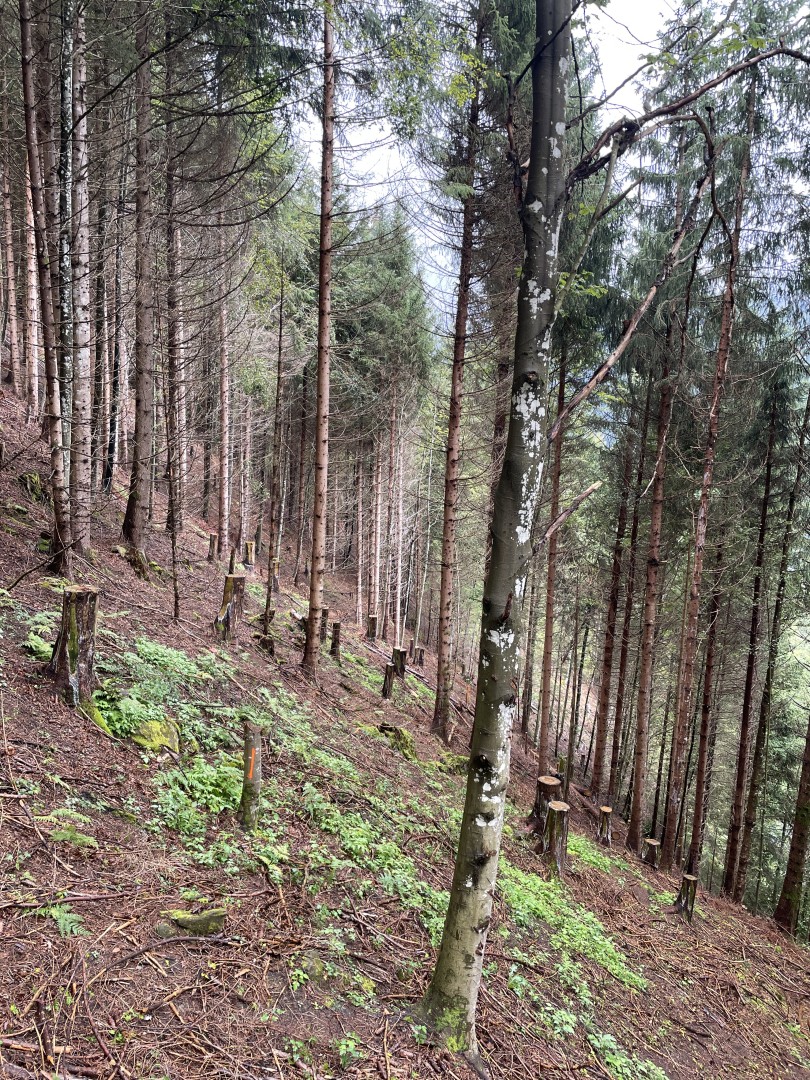 Wie bewähren sich die angelegten Lücken? Wie wird sich der zahlreich vorhandene Bergahorn-Anwuchs weiterentwickeln? Wie entwickelt sich die Verjüngung der einzelnen Baumarten in den Lücken?